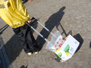 水の搬送体験(運びにくいので段ボールに入れて) 水の搬送体験(キャスターを使えばさらにラク) 投てき水パック