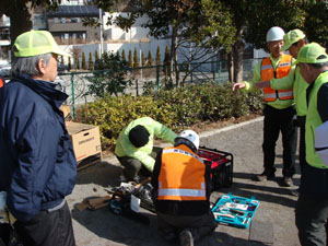 資機材運転確認も実施しました。機材の動かし方の訓練と併せて、機材が正しく動くのか確認し、いざという時にも使用できるようにしています。