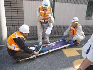 • 救出(担架搬送要員)訓練:救出要員派遣・仮救護所での応急手当